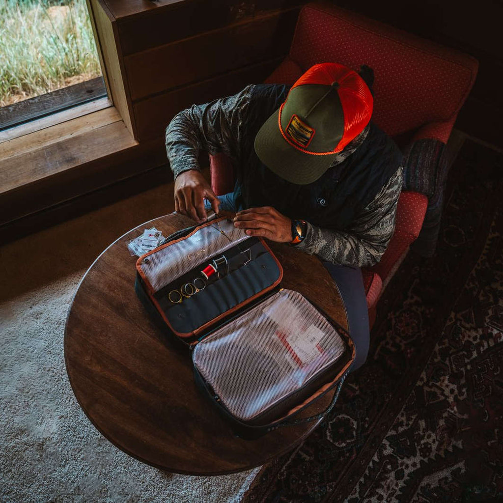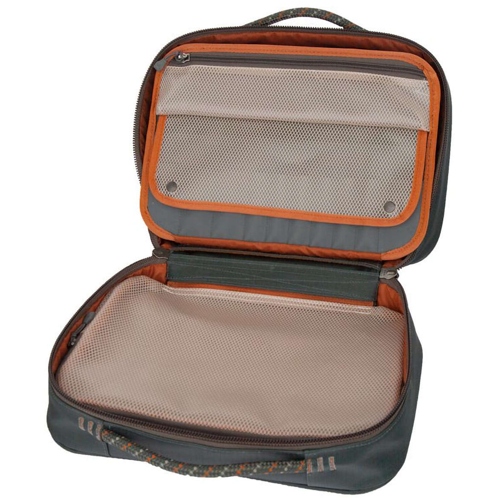 The Fishpond Backwater Fly Tying Kit is the perfect bag for someone that ties flies and travels. If you like to take your vice and some fly tying materials on your trips, you need this! The Fishpond Backwater Fly Tying Kit can carry your vise, tools, spools of thread, tinsel and floss, and has plenty of room and organization for a lot of materials. The Fishpond Backwater Fly Tying Kit has about half of the capacity as the Fishpond Tailwater fly Tying Kit Bag, but it can still hold a lot of materials.