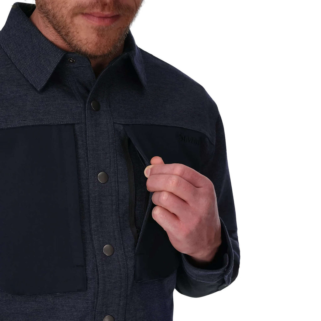 The Simms Confluence Overshirt is a heavyweight shirt that can be worn as a cool weather shirt or light jacket. It is a stunning shirt at first glance that will have your fishing buddies wanting one and you wife giving you the seal of approval. The dark charcoal heavy fabric with black reinforcing overlays on the pockets, elbows and shoulders provides a bit of weather protection and adds to the shirt's longevity, in addition to providing classic great looks. The back of the shoulders features a hidden stretch fabric for full mobility while casting or rowing a boat without compromising its good looks, while providing a level of comfort hard to match for a heavyweight shirt. The Simms Confluence Overshirt is a great shirt for a cool day on the river or grabbing beers and dinner that evening in town.